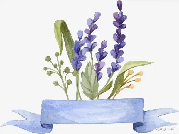 水彩薰衣草png素材透明免抠图片卡通手绘