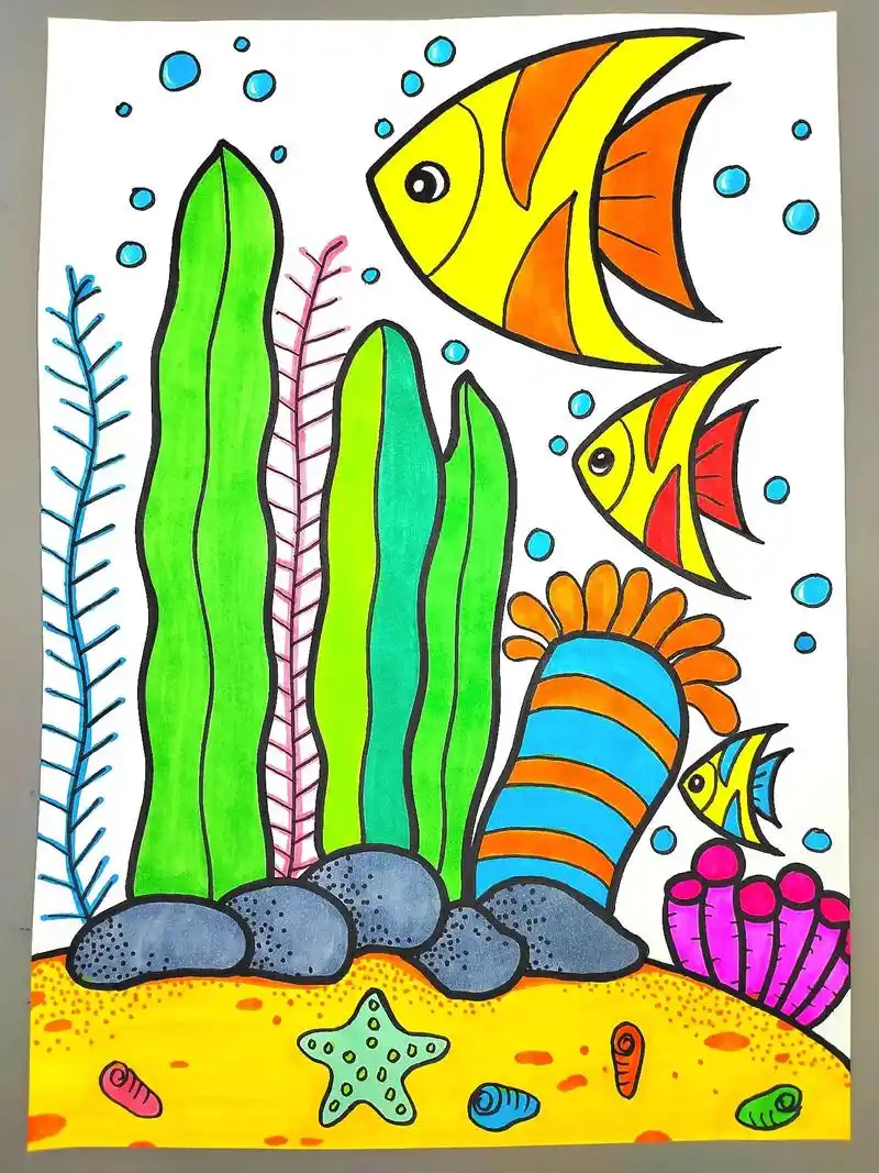 美丽的海底世界创意画,一起来画漂亮的小鱼96,简单又好看,快 - 抖音