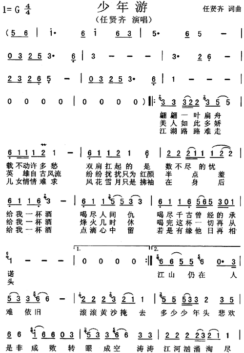 少年游_歌谱简谱_哆来咪123曲谱网