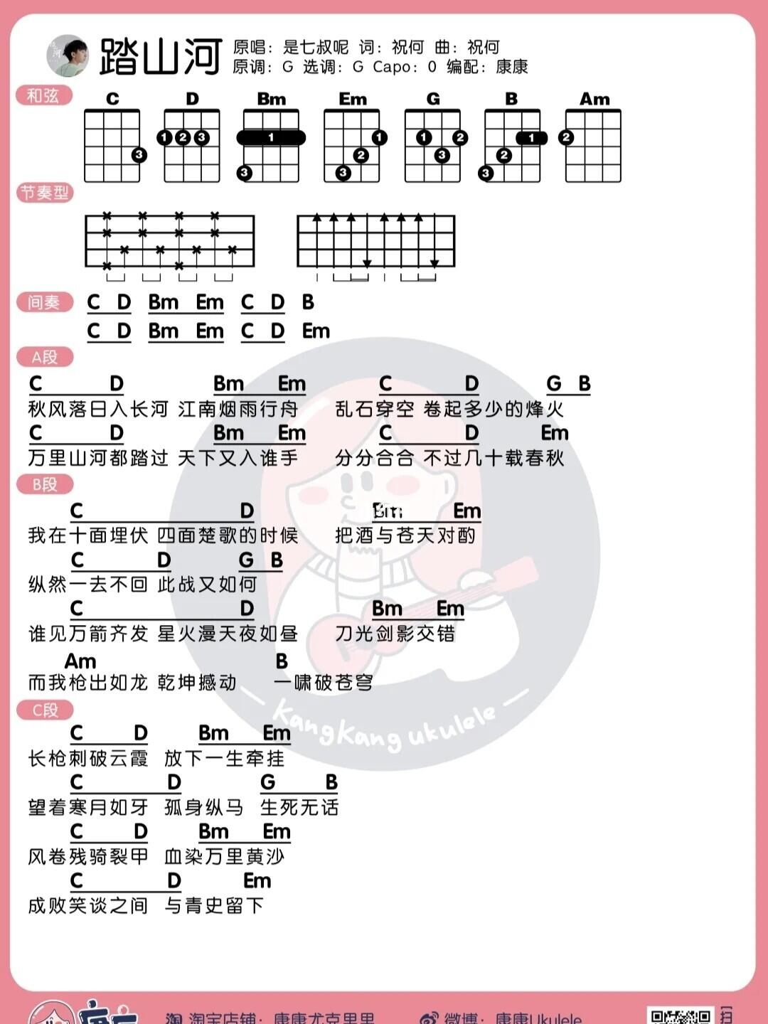 是七叔呢踏山河尤克里里弹唱谱