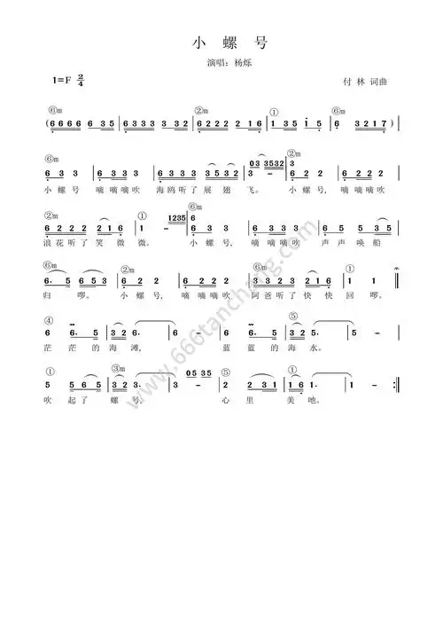 小螺号_小螺号简谱_小螺号吉他谱_钢琴谱-查字典简谱网