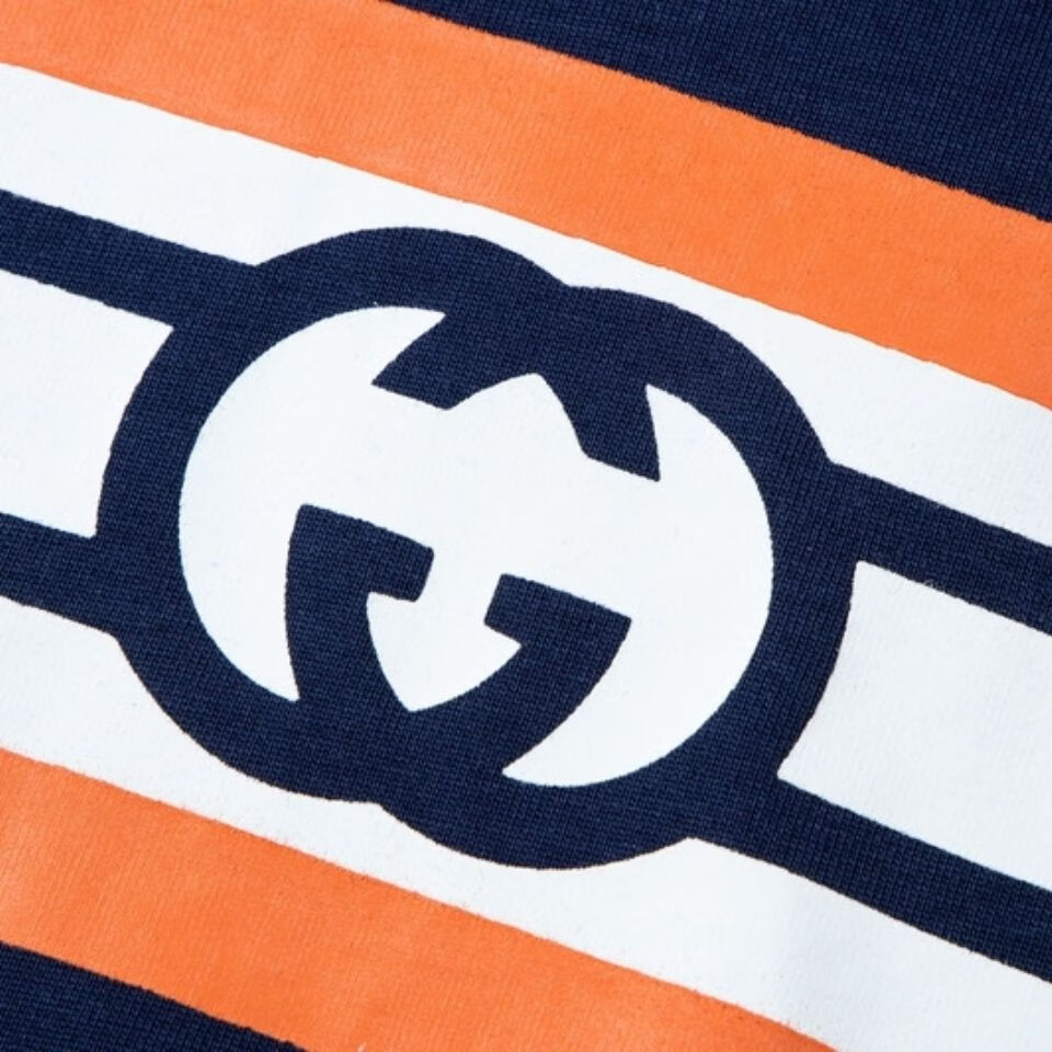 经典款高品质酷奇上衣2022夏款新款g家互扣式双条纹印花三色条纹半袖