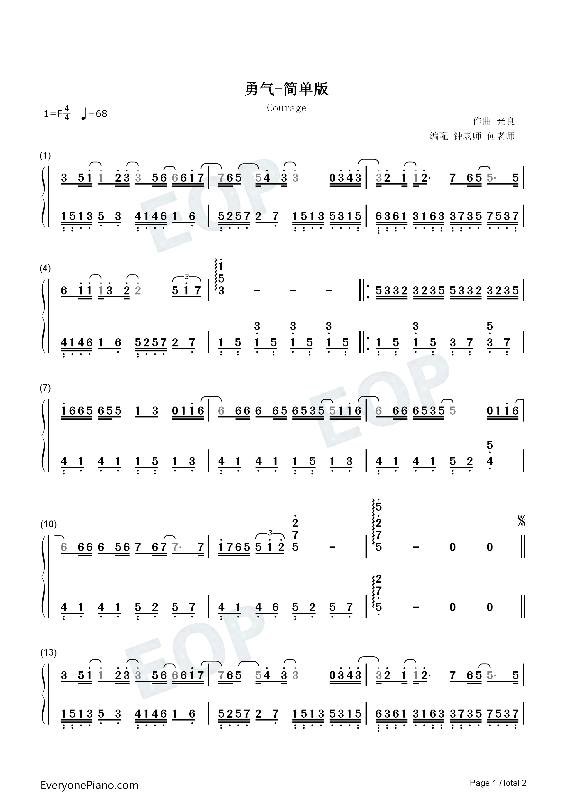 《勇气》钢琴简谱#钢琴简谱 #钢琴谱分享 #流行钢琴谱 - 抖音