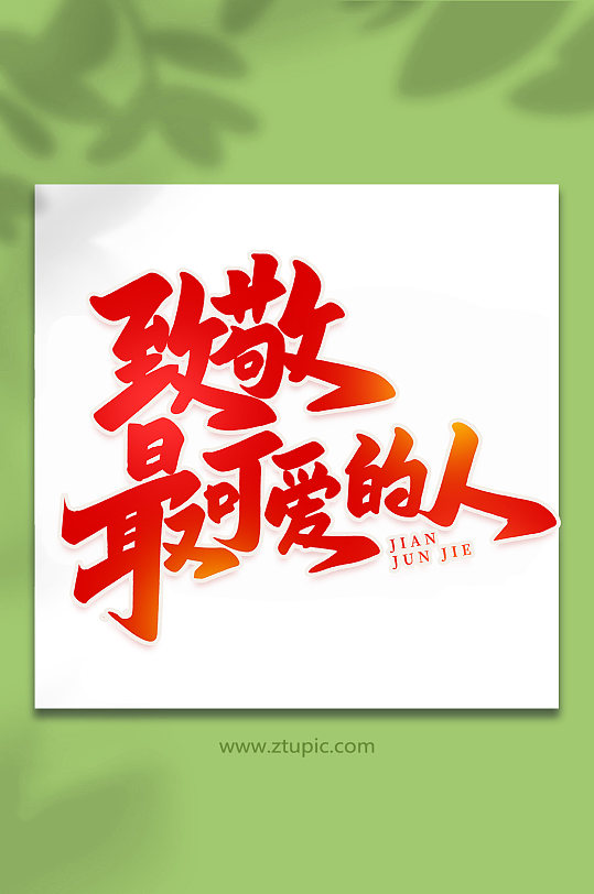 红色毛笔艺术字致敬