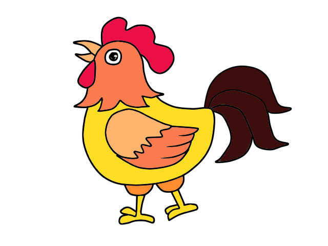 公鸡简笔画,公鸡展翅图片简笔画带颜色?图5