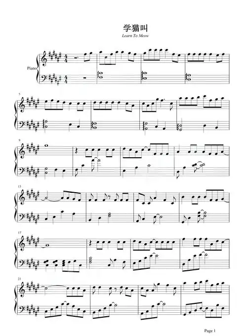 学猫叫钢琴谱-小潘潘-众多明星模仿,原唱yy主播小潘潘来啦