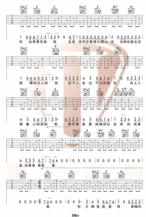 hita《赤伶》吉他谱_g调吉他弹唱谱