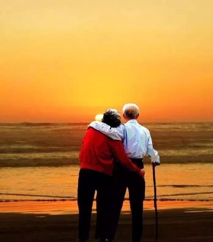 夕阳下相伴的老年伴侣