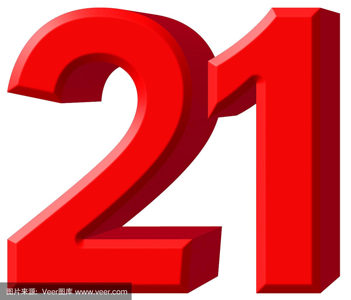 数字21,21,孤立在白色背景,3d渲染