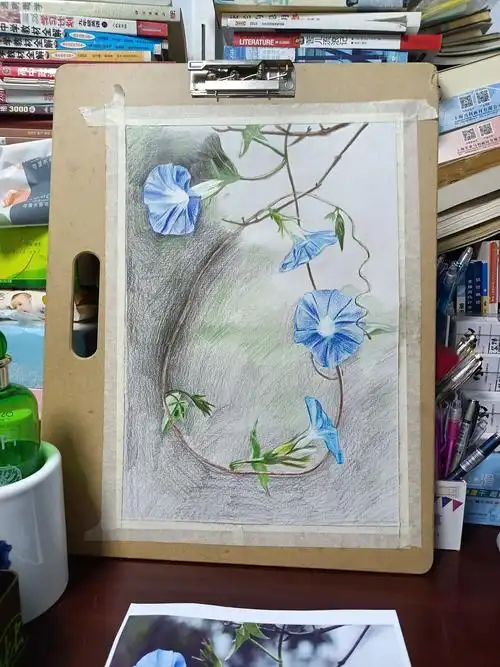 亚特教育彩铅画《牵牛花》线上课作品展示
