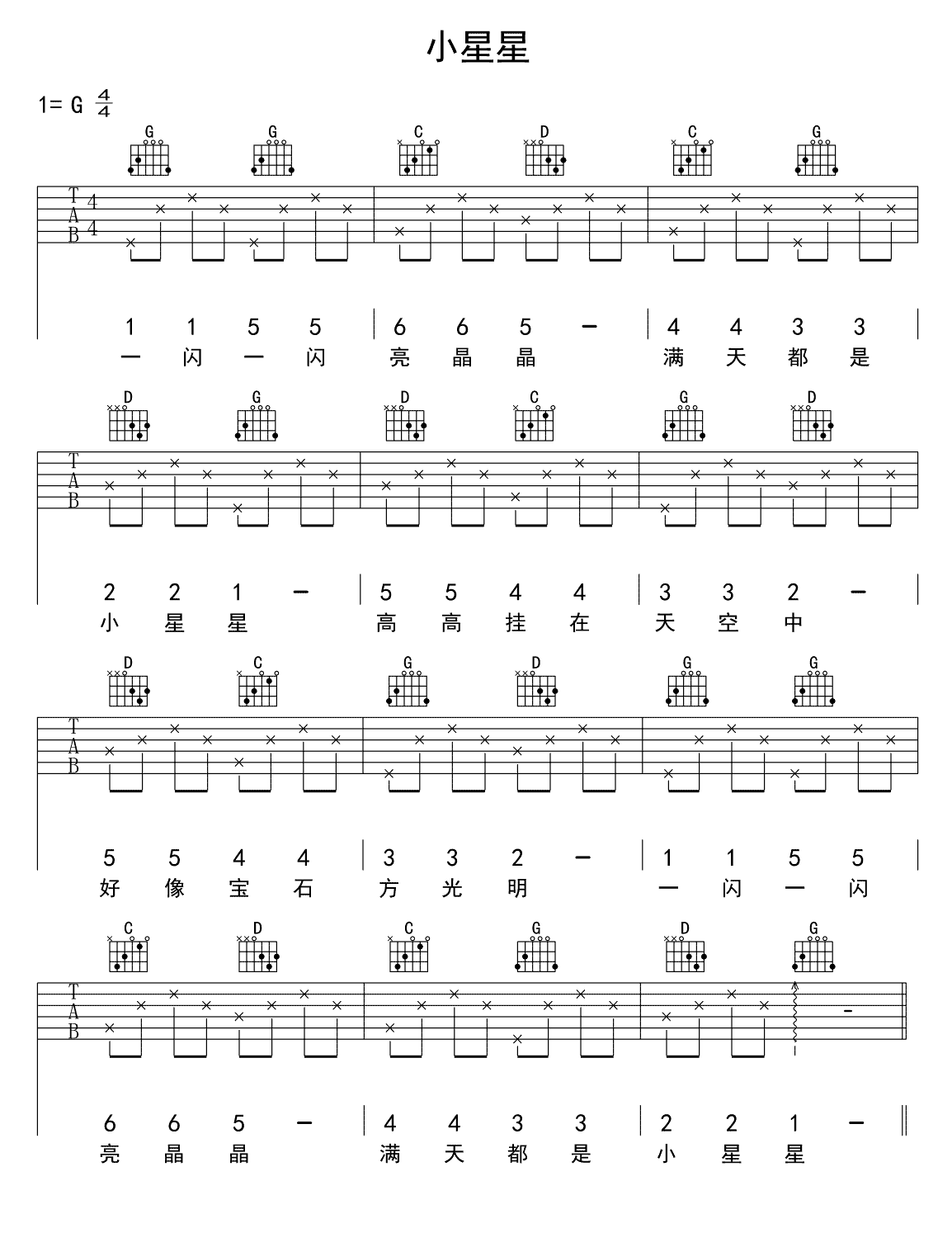 儿童歌曲小星星吉他谱六线谱图片谱新手练习谱