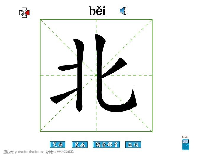 北字的拼音和书写笔画的图片展示