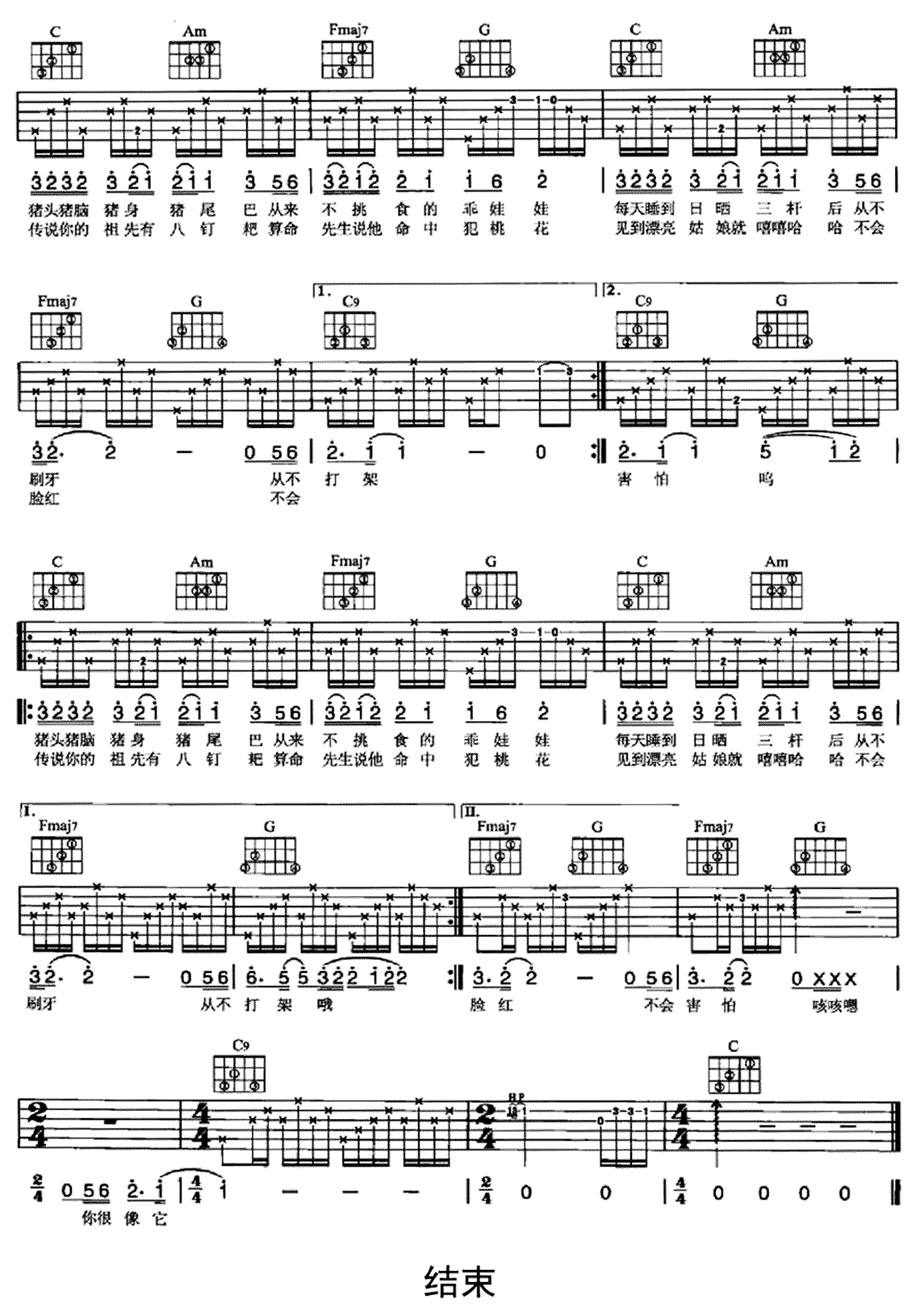 《猪之歌》,香香(六线谱 吉他谱吉他谱 第1页