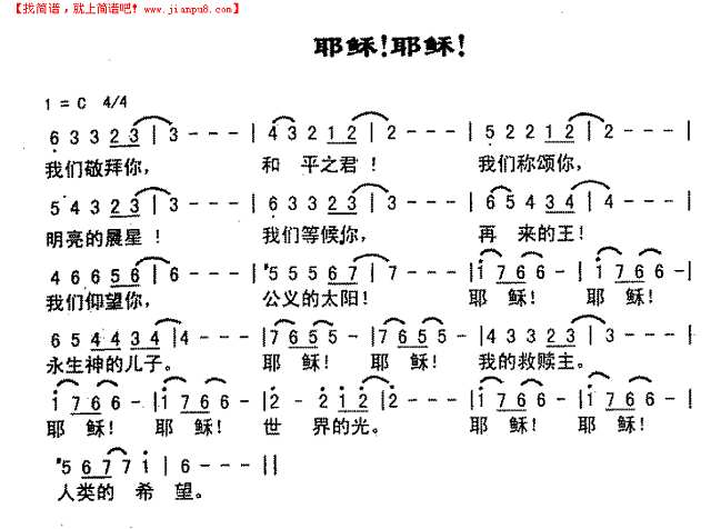 耶稣,耶稣歌谱简谱