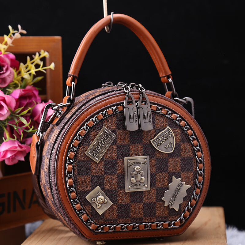 酷奇袋鼠(kuqidaishu)酷奇包包女包小圆包潮流手提包棋盘格单肩斜挎包