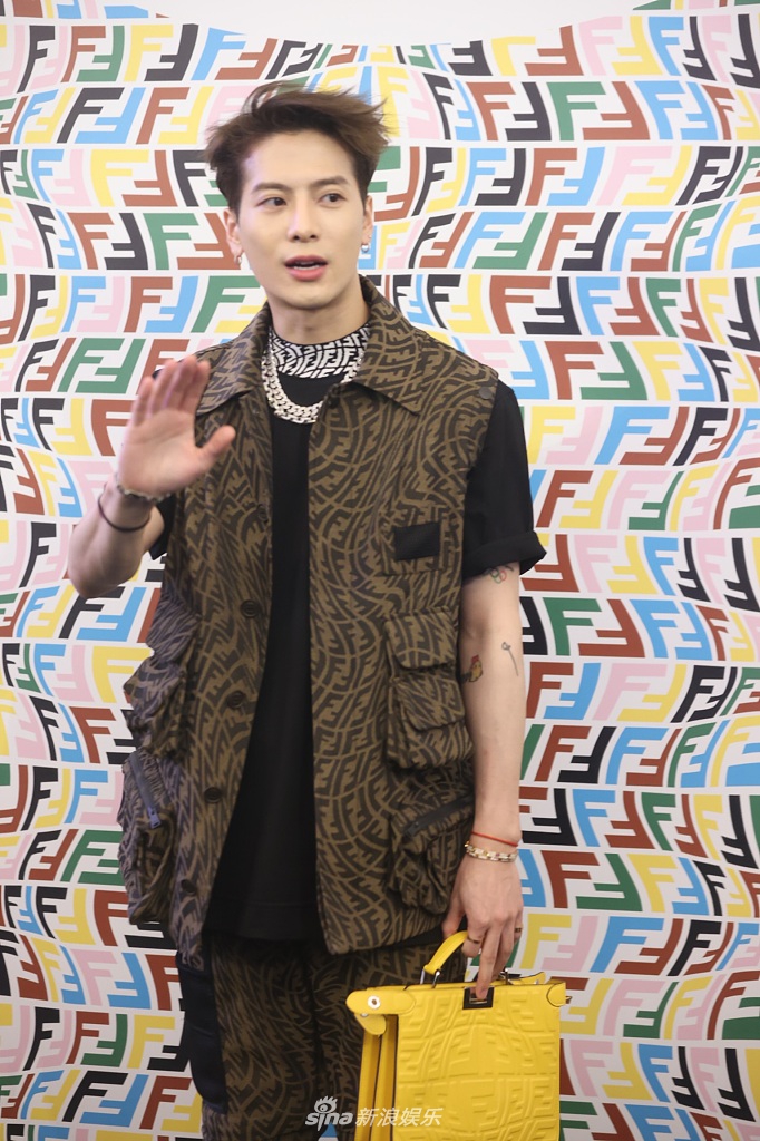 组图:王嘉尔三七分发型酷炫抢眼 印花马甲配黑t生图帅气逼人
