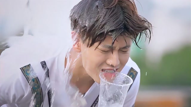 任嘉伦玩游戏太拼咬着水杯任凭水泼头发全湿素颜出镜丨高能