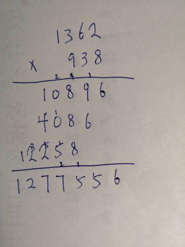 1362乘以938竖式 哪位大神 小哥哥 小姐姐帮我算哈!