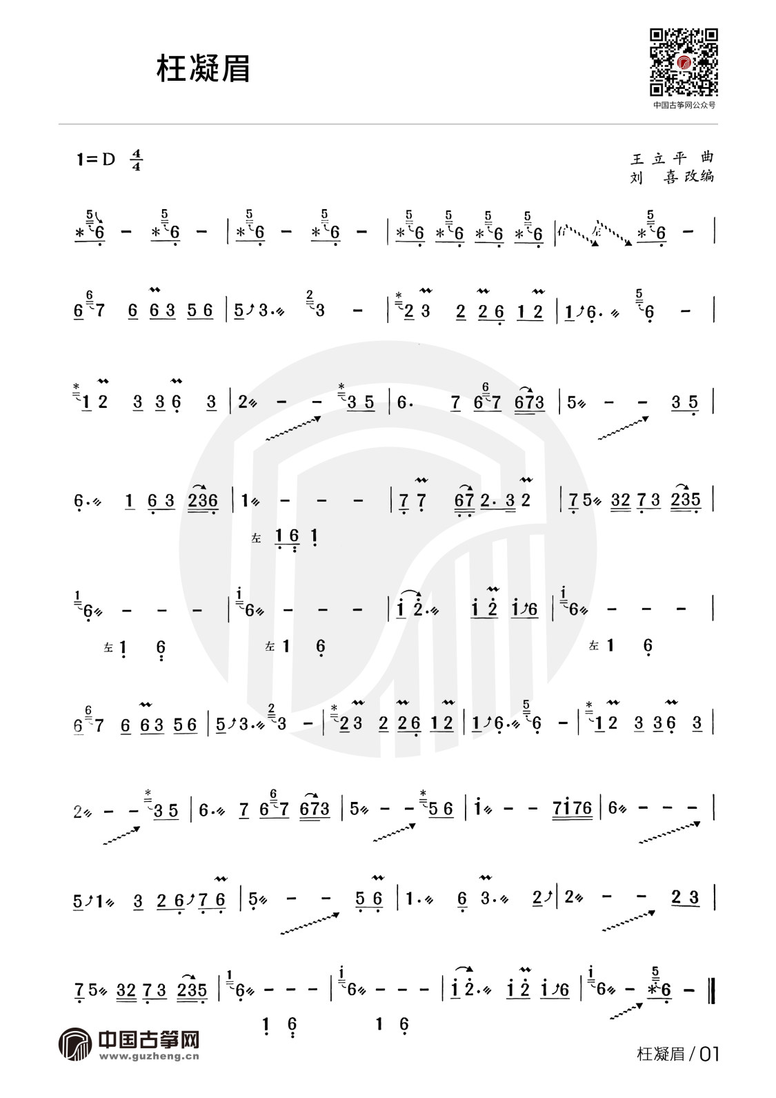 枉凝眉古筝谱-刘喜枉凝眉古筝谱-枉凝眉古筝曲谱-中国古筝网