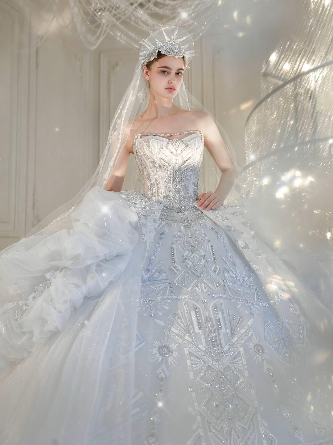 如恒星汇聚光芒的仙气婚纱包头婚纱礼服