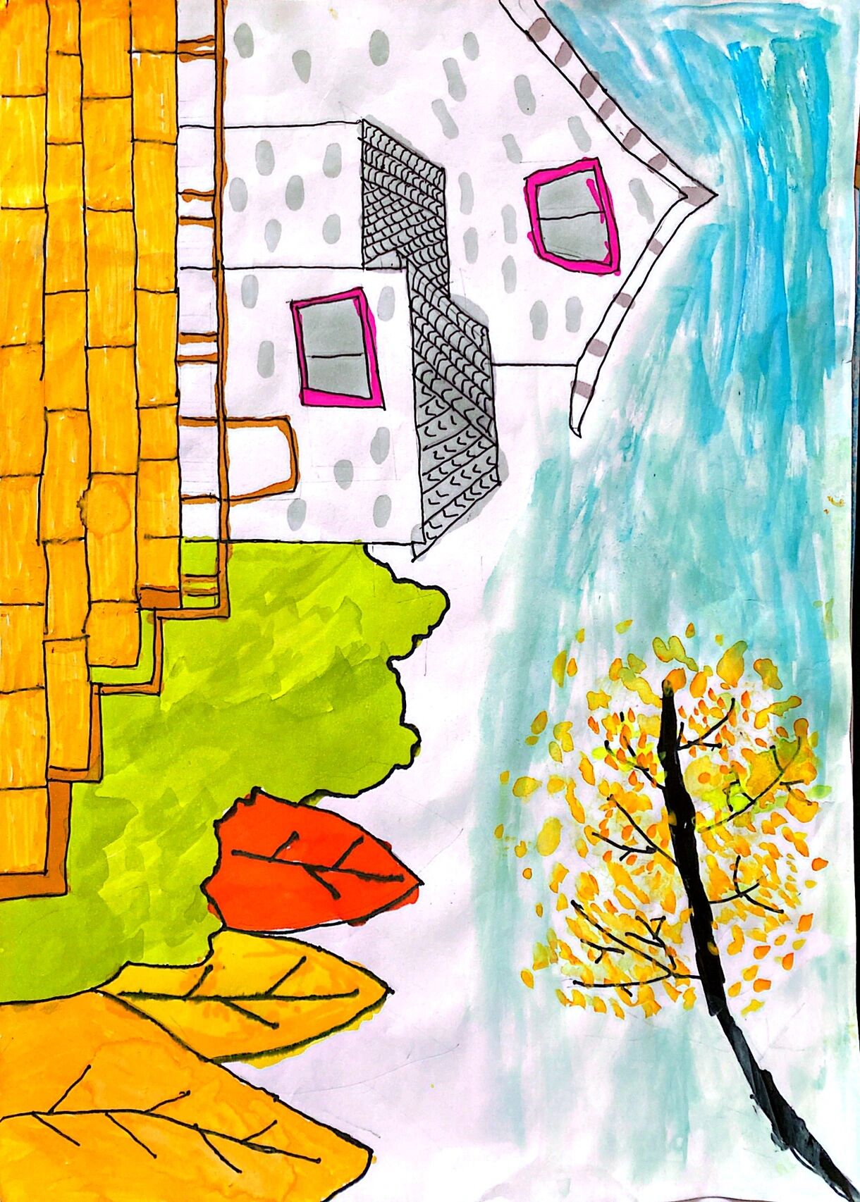 家乡的秋天 二年级儿童主题绘画 每次孩子们把作业交上来 都感觉是一