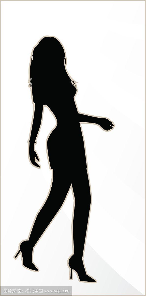时尚,移动,时髦,女人,剪影,帽子,晚礼服