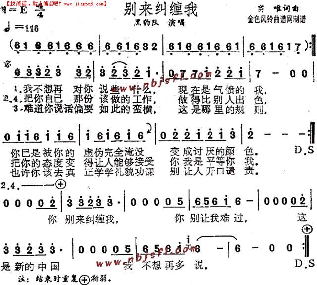 别来纠缠我 歌谱简谱网