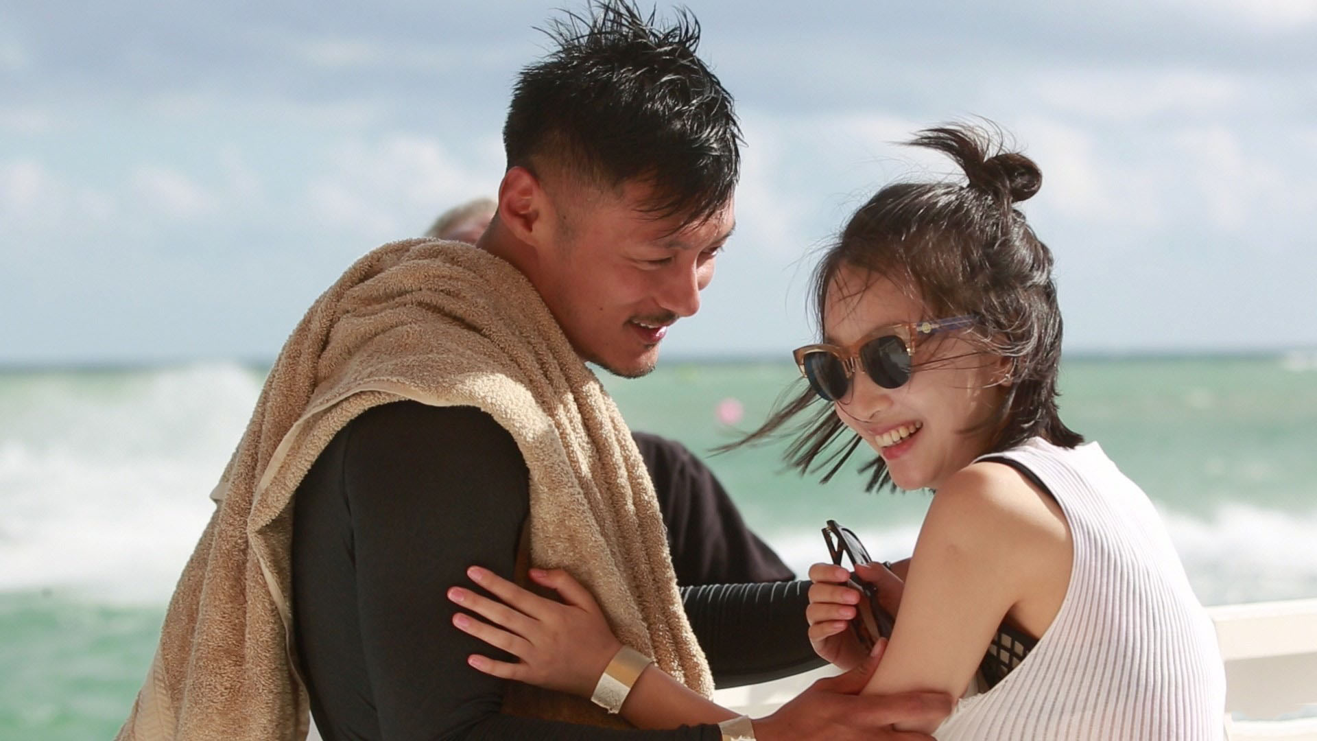 和余文乐谈起了恋爱,结束时,周冬雨撒娇地对余文乐说:"你把手上的大金