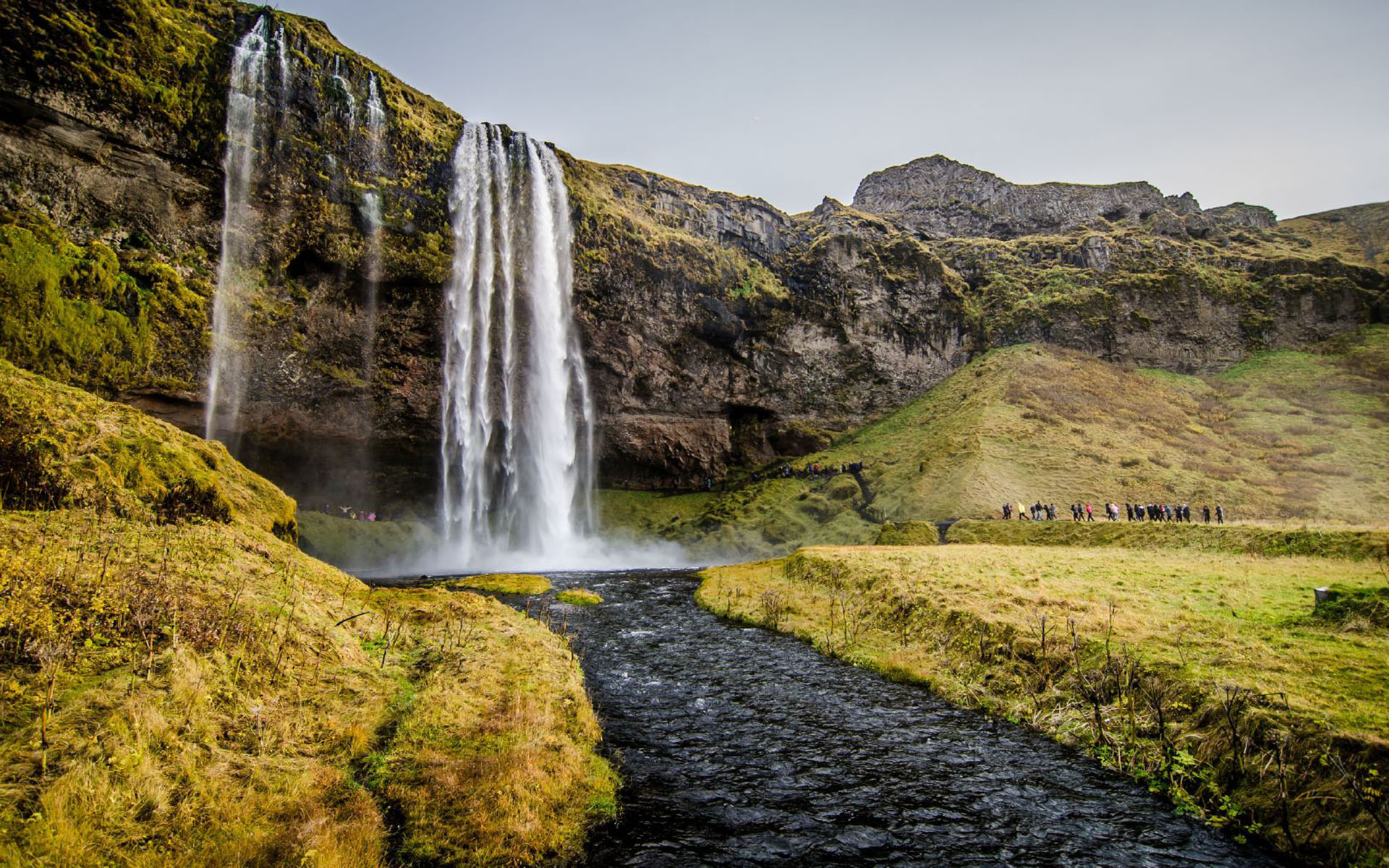 一个风景如画的瀑布在喀尔卡瀑布,湖泊景观公园,克罗地亚在春天或夏天