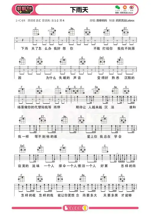 南拳妈妈【下雨天】尤克里里弹唱谱