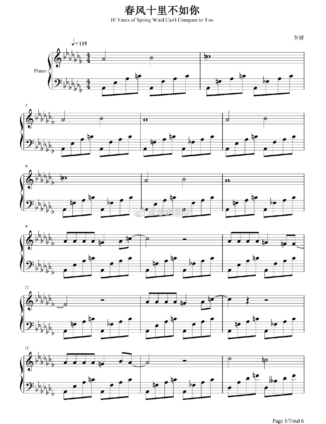 钢琴谱李健春风十里不如你电视剧春风十里不如你主题曲