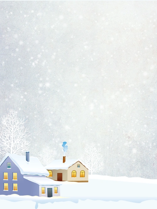 唯美卡通小雪冬天房屋风景插画背景