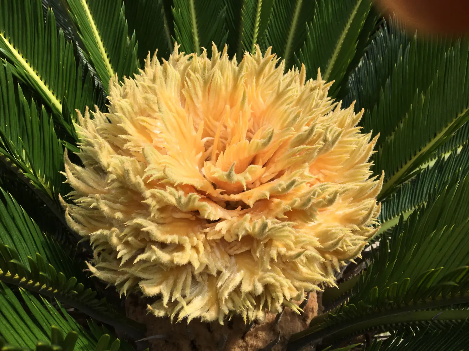 罕见!江苏镇江小金山湖畔两颗铁树同时开花,原来铁树花是这样的_网易