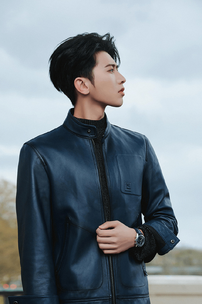 蔡徐坤巴黎行的宣传新图,利落有型的皮衣造型,街头漫步的随性时刻.