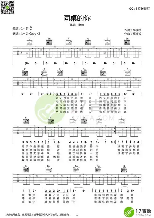 同桌的你吉他谱txt 老狼 同桌的你吉他谱c调查字典简谱网