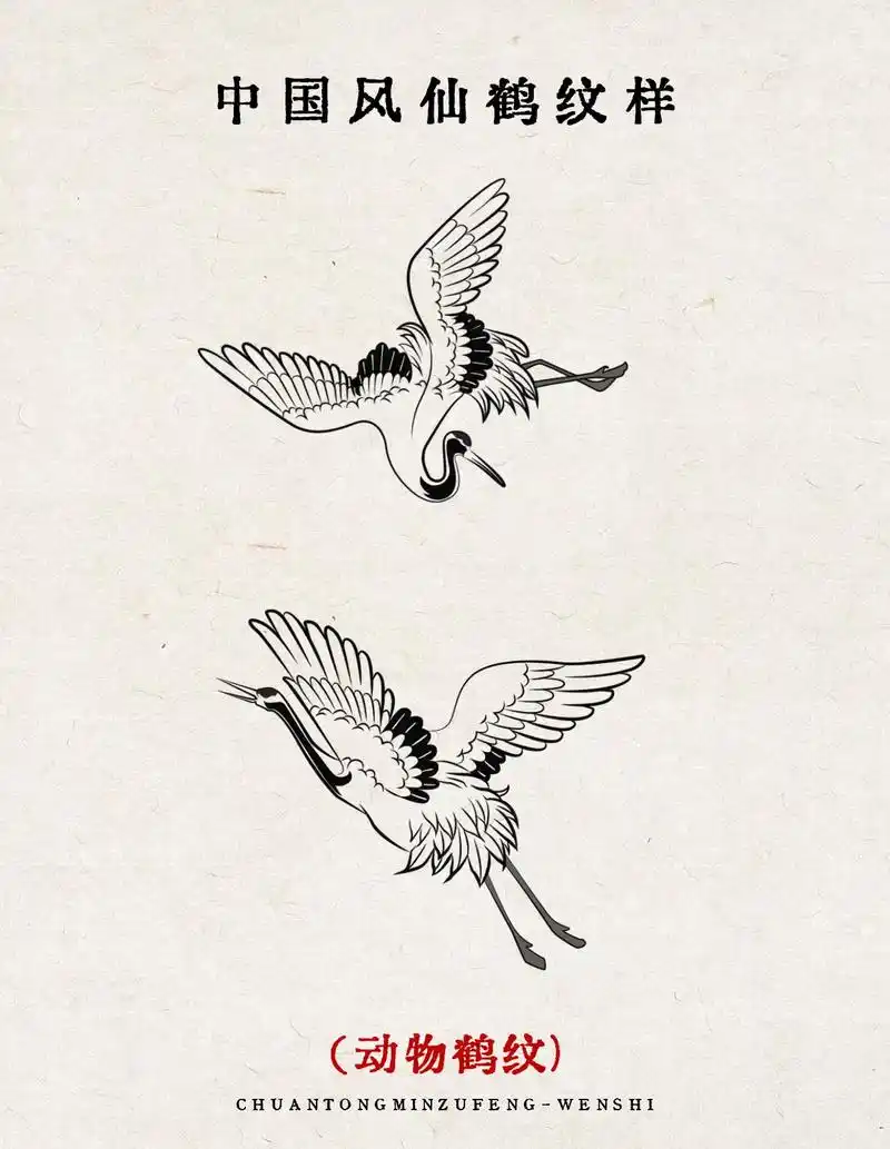 中国传统国风仙鹤纹样-手绘装饰图.国潮仙鹤插画图案#图案设计 - 抖音