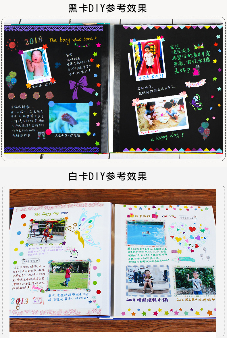 abay宝宝成长纪念册diy相册手工影集自粘贴式覆膜家庭儿童记录册手册