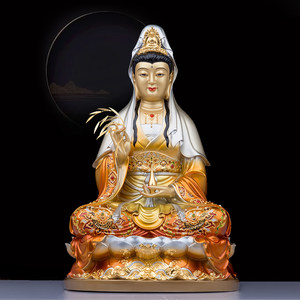 观音佛像供奉家用台湾纯铜贴金手工彩绘观世音菩萨客厅观音摆件