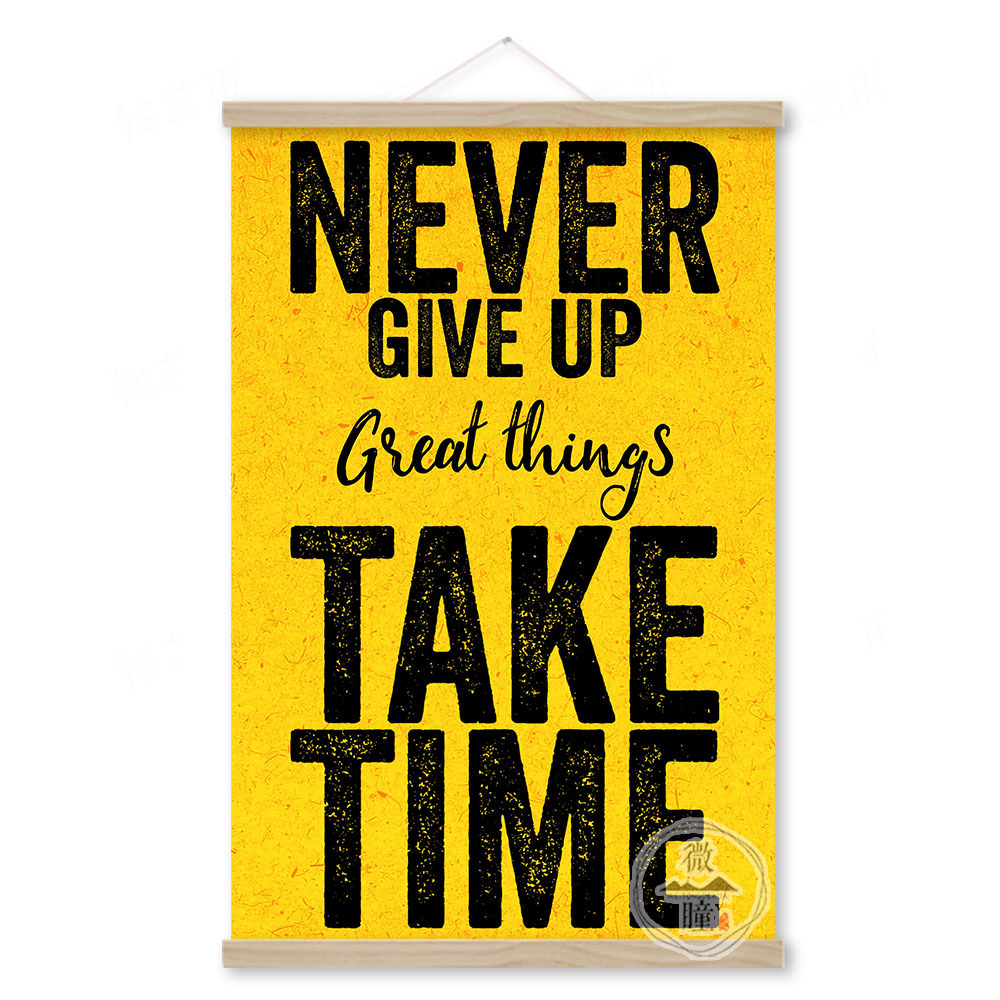 复古简约英文励志海报中式文字装饰画永不言弃挂画客厅书房实木画