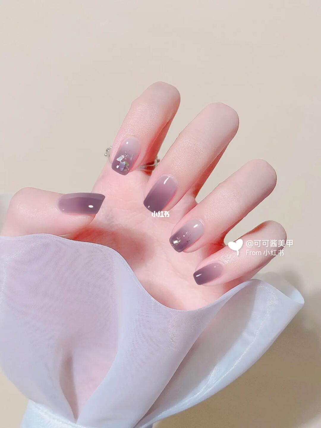 2021最火的清新冰透芋泥紫双色渐变美甲 【图】
