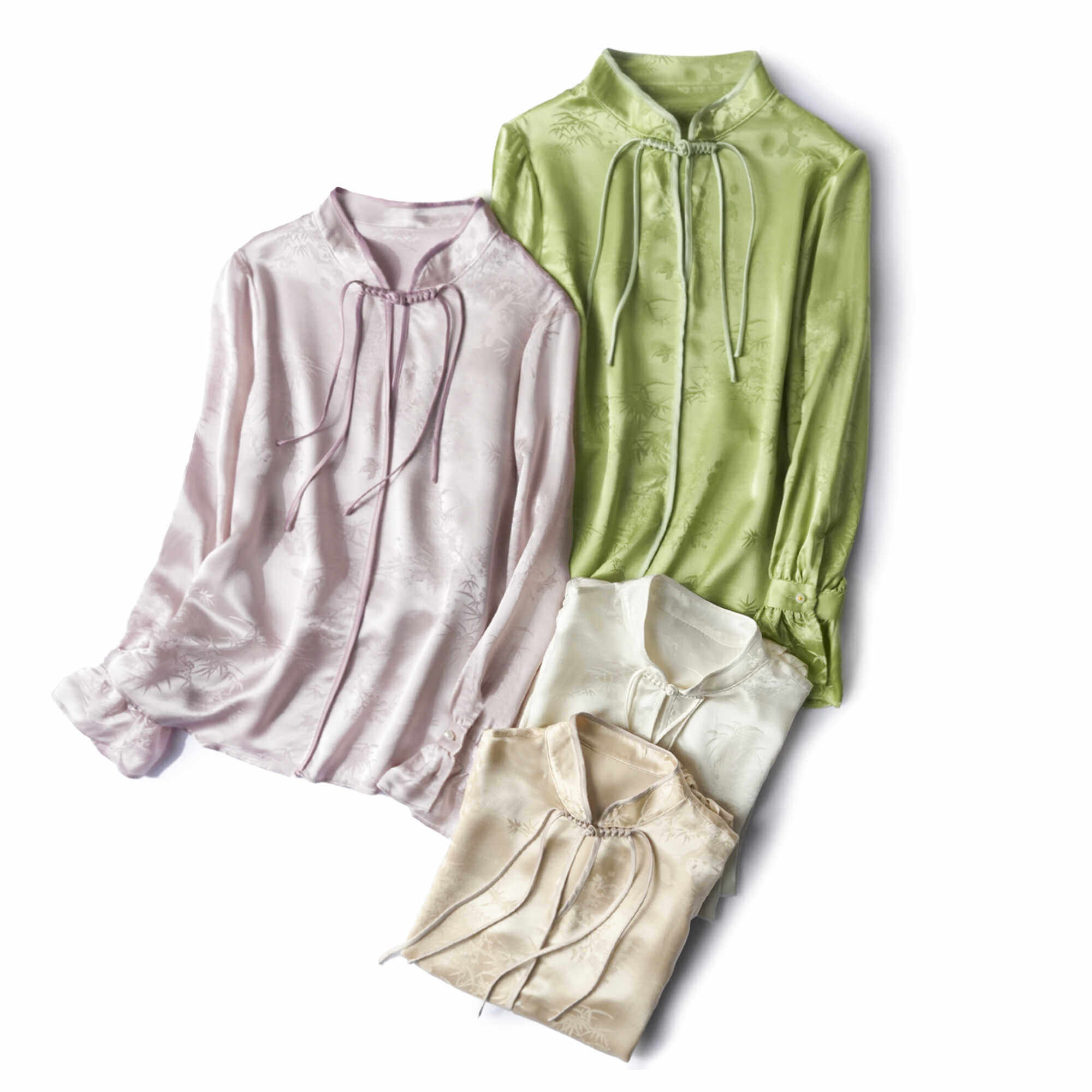 立领显瘦气质减龄桑蚕丝真丝衬衫衬衣香云纱上衣女2024春夏新款