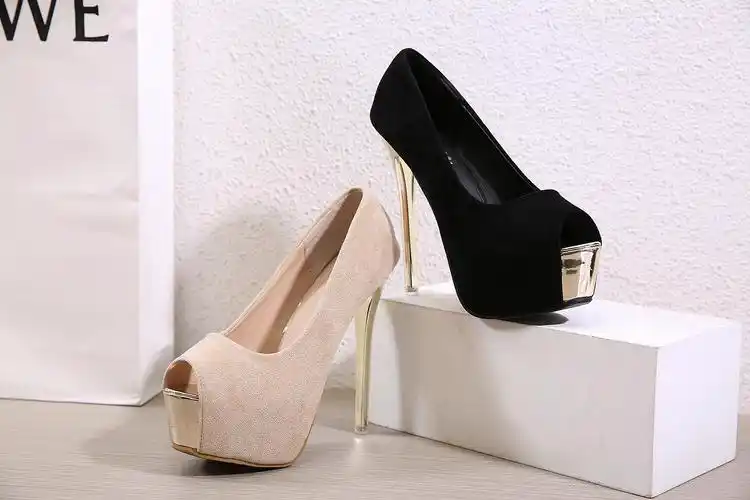 恨天高鱼嘴超高跟白色单鞋16cm高细跟性感厚底防水台黑色夜店女鞋