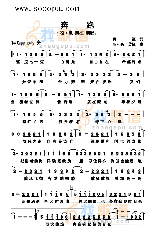 谱友园地 中国曲谱网快乐奔跑 刘田心词 丁时祺曲奔跑不放弃 和弦简谱