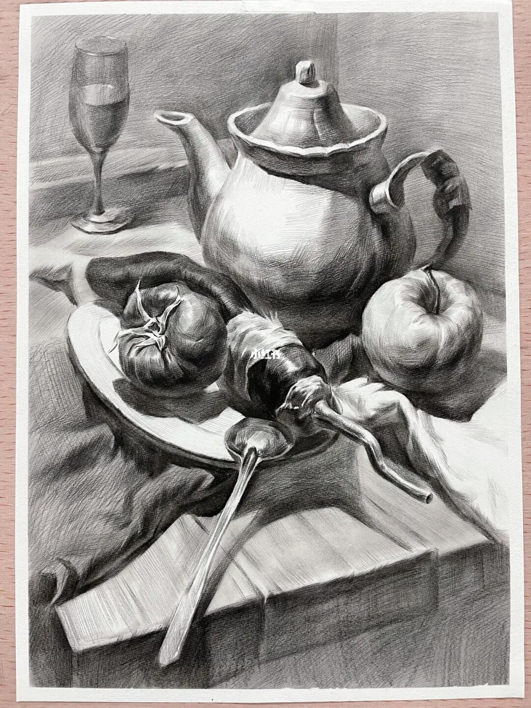 素描静物作品_优秀素描静物高清临摹图片_武汉北艺画室