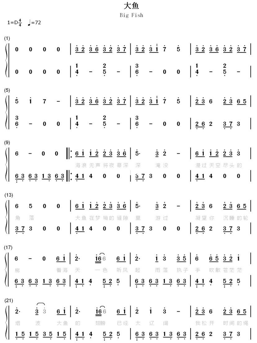 大鱼钢琴简谱完整版,附零基础双手教程,新手必练!-第1张图片