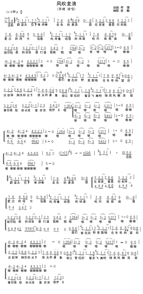 简谱风吹麦浪简谱