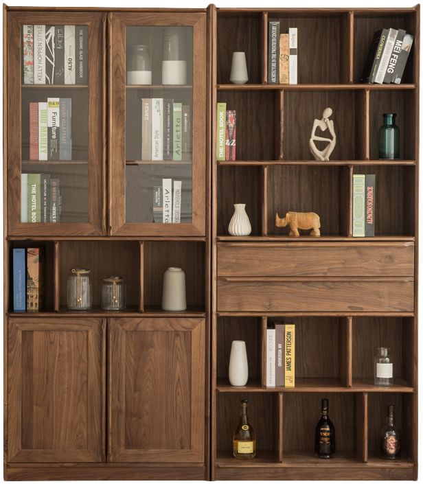 一山木作 北欧风全实木黑胡桃玻璃门书柜