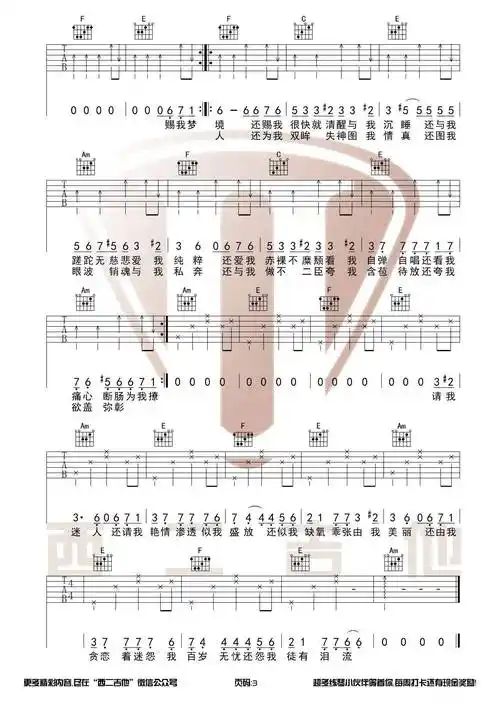 易燃易爆炸吉他谱 c调女生版_西二吉他编配_陈粒-看谱啦