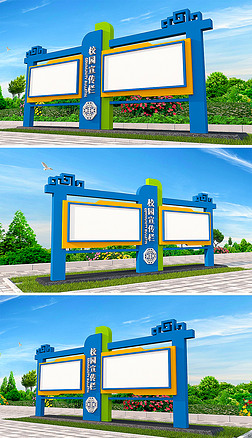 蓝色大气简约户外校园宣传栏橱窗公示栏