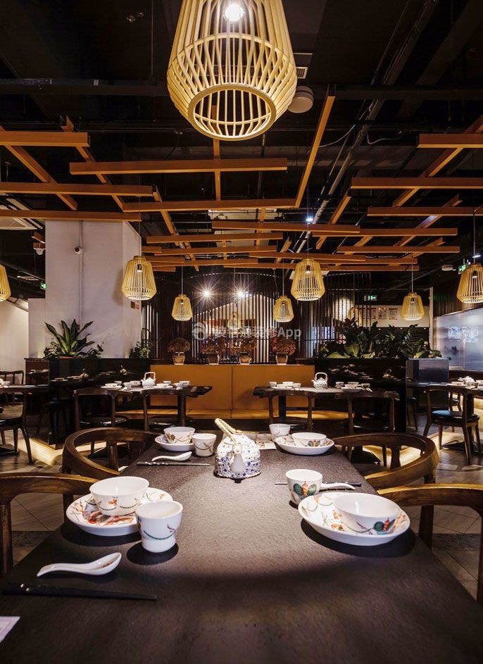 杭州1000平新中式风餐厅装修设计案例